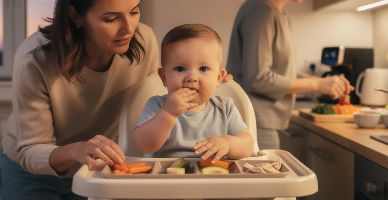 En soirée, il est judicieux d’opter pour une version « allégée » de la DME. Concrètement, on peut proposer un ou deux aliments finger food faciles à manipuler (par exemple, des bâtonnets de patate douce ou de courgette bien fondants), tout en conservant le lait comme pilier du repas. Vous pouvez par exemple offrir à votre bébé une courte séance de DME au début du dîner, puis terminer par la tétée ou le biberon, afin de garantir des apports lactés suffisants et de limiter la fatigue.